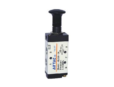 Tlačítkový manuálně ovládaný 5/2 ventil.